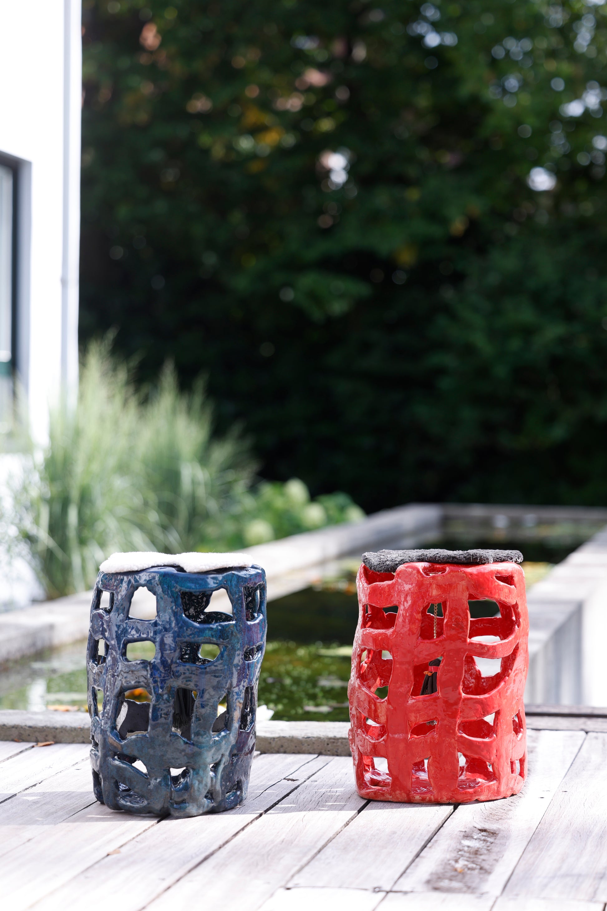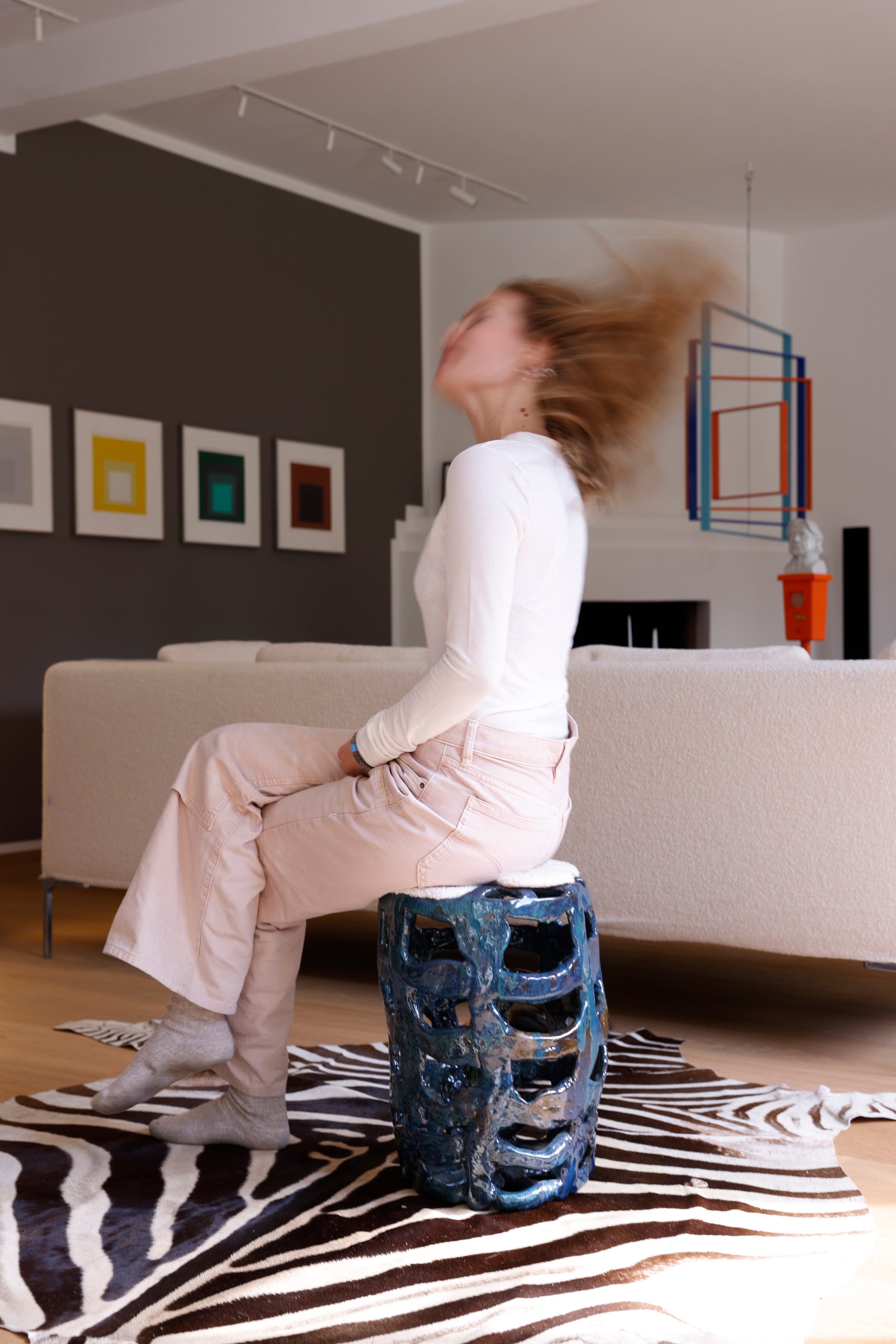 ceramic stool with a colorful bobble dangling inside. In short, the stool is highly
